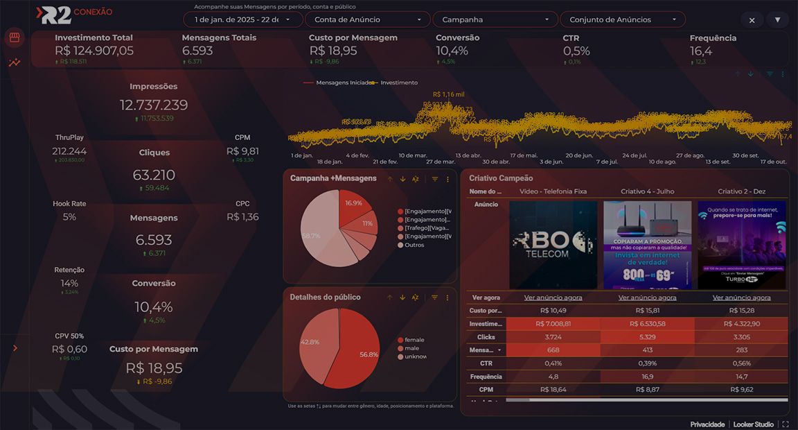 Dashboard em tempo real com os resultados das campanhas